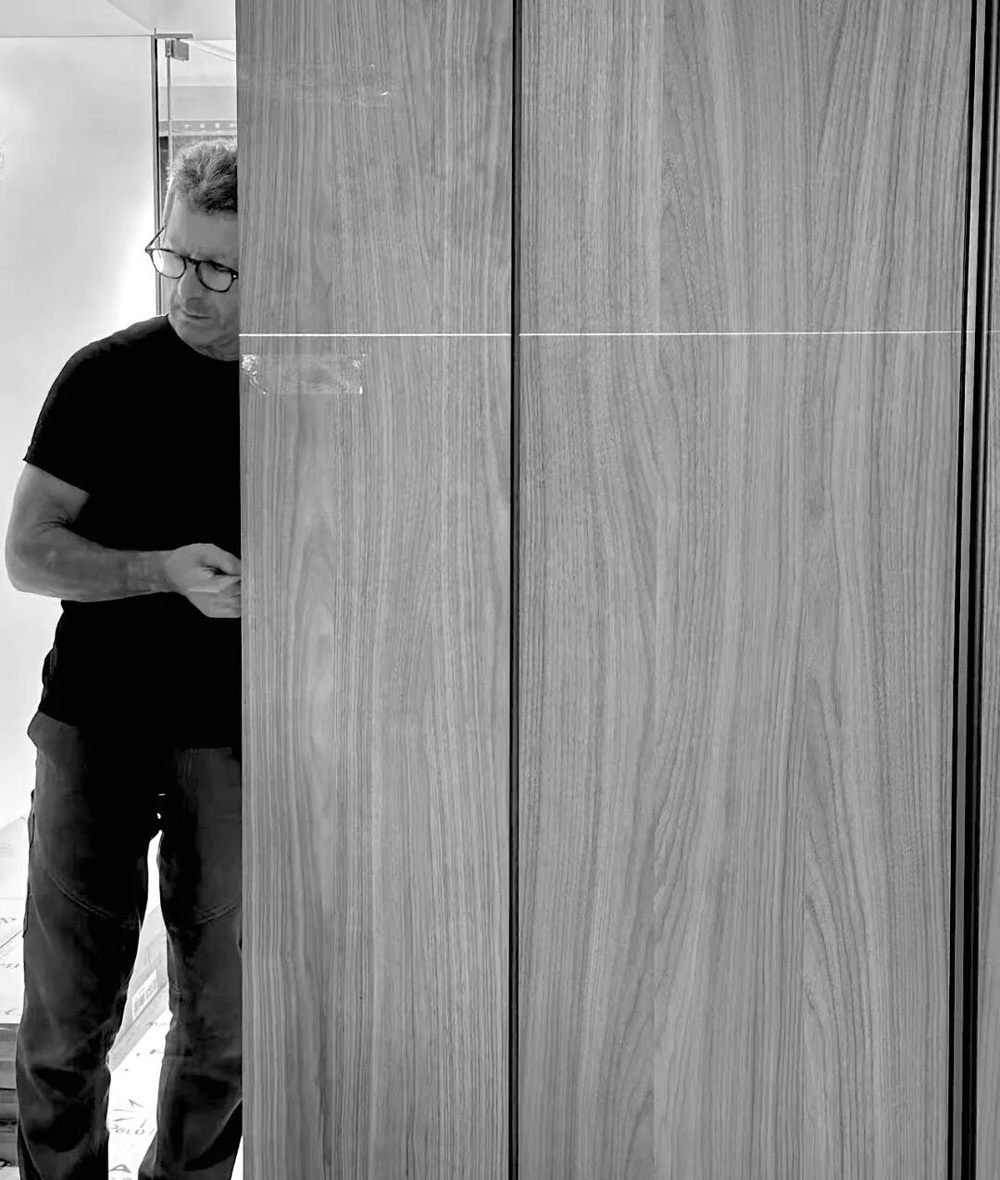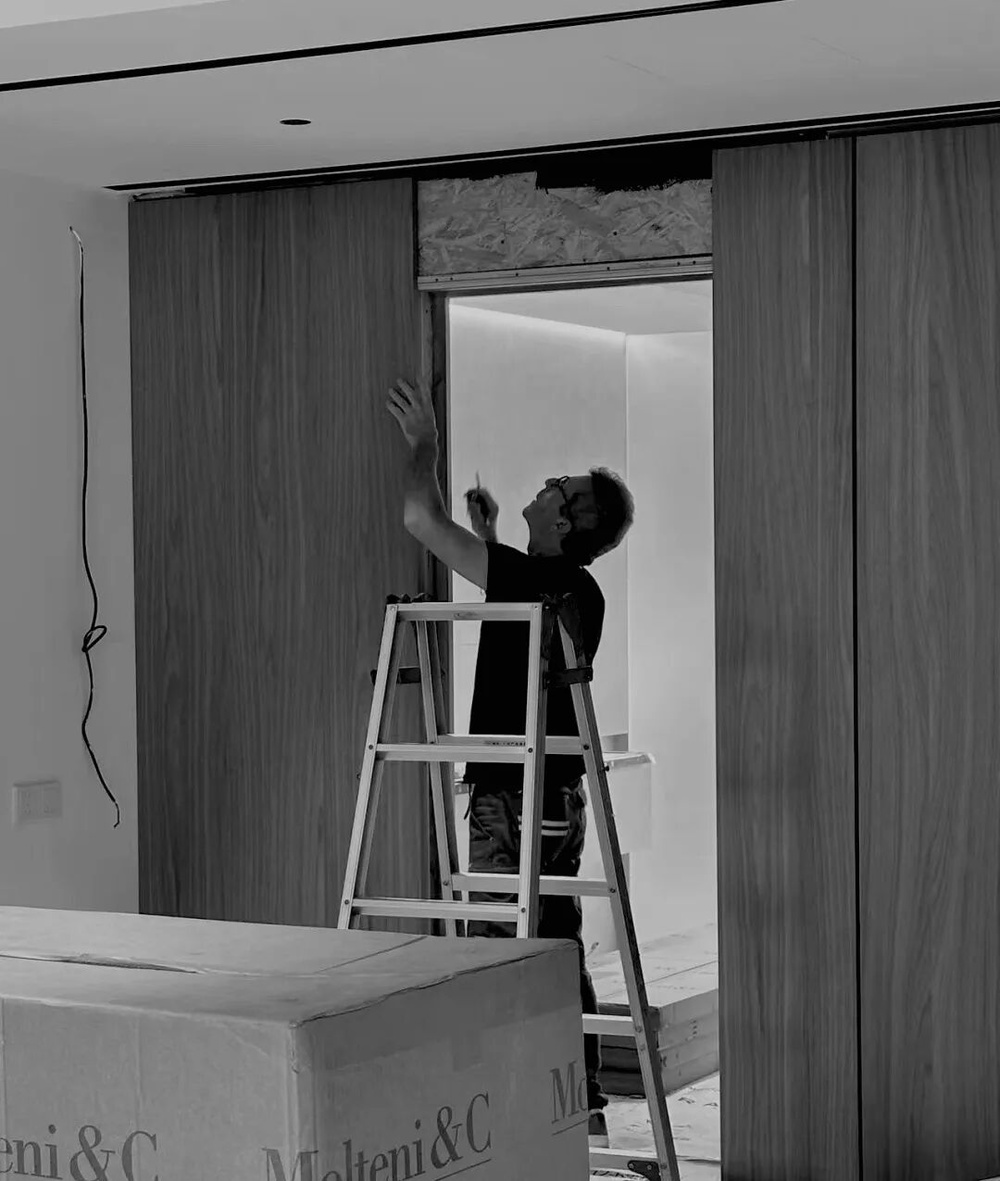 室内的每一件家具也蕴藏着意大利人对细节的极致追求,前期设计师统一协调精准尺寸放样,中国工匠在完成预定的工作后,意大利工匠来到苏州负责内部安装和调试。定制衣柜系统以严密的模数控制收纳尺度,毫米级的精度嵌入墙面。