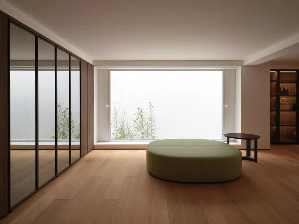 纱帘低垂,如半透的宣纸,成了光的画布。建筑的飞檐斜斜切过帘幕,光影时深时浅,墨色晕染又收束。院中的树影也悄然攀上,枝桠疏淡,偶有风过,便簌簌地晃成一片水墨的皴笔。几何的纯粹线条、东方的朦胧诗韵,共同剥离掉所有杂音,室内宁静,因这一帘浮动的影而生动起来。 这是一栋位于苏州古城桃花坞附近的别墅住宅,700㎡的庭院不仅有江南园林之景,更是承托生活的诗意场域,室内1000㎡以最舒适的质感,承载着三代人的生活。