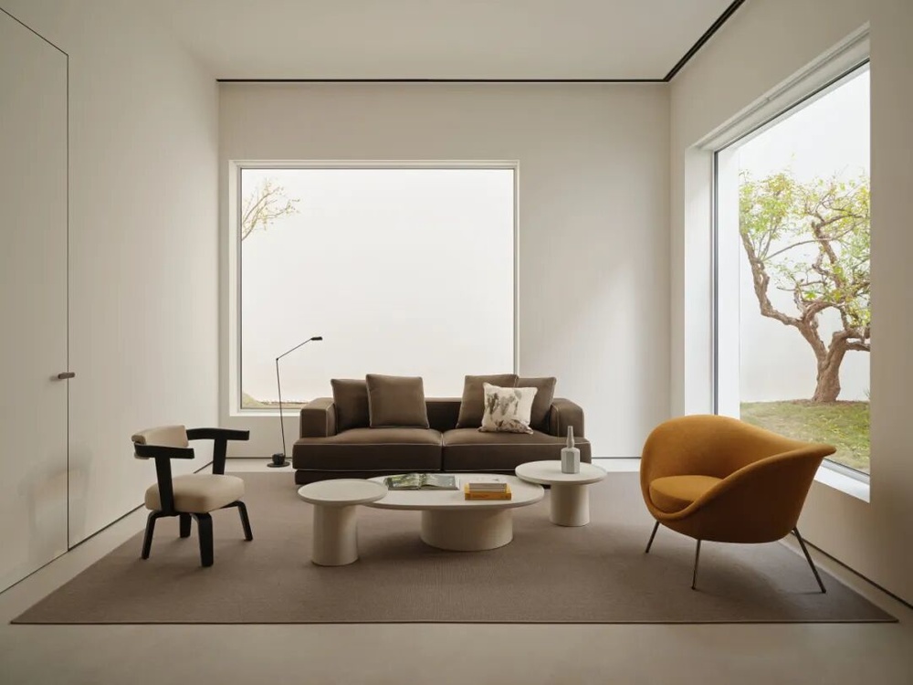设计师张海华是苏州人,持续在思考“东方人文主义空间”的当代表达。在这栋别墅中,处理古典园林和意式极简之间的矛盾是设计的重点。 他找到的媒介是光,在静态的空间里,让光流动起来,让极简主义的家具与动态的光影实现双重构建,一静一动、一实一虚,相互叠加出独一无二的场域。不同时间光影投射在窗帘上,风一吹树影便晃动起来。室内空间的规划和家具特定的位置,让人获得了最佳的观赏感受。